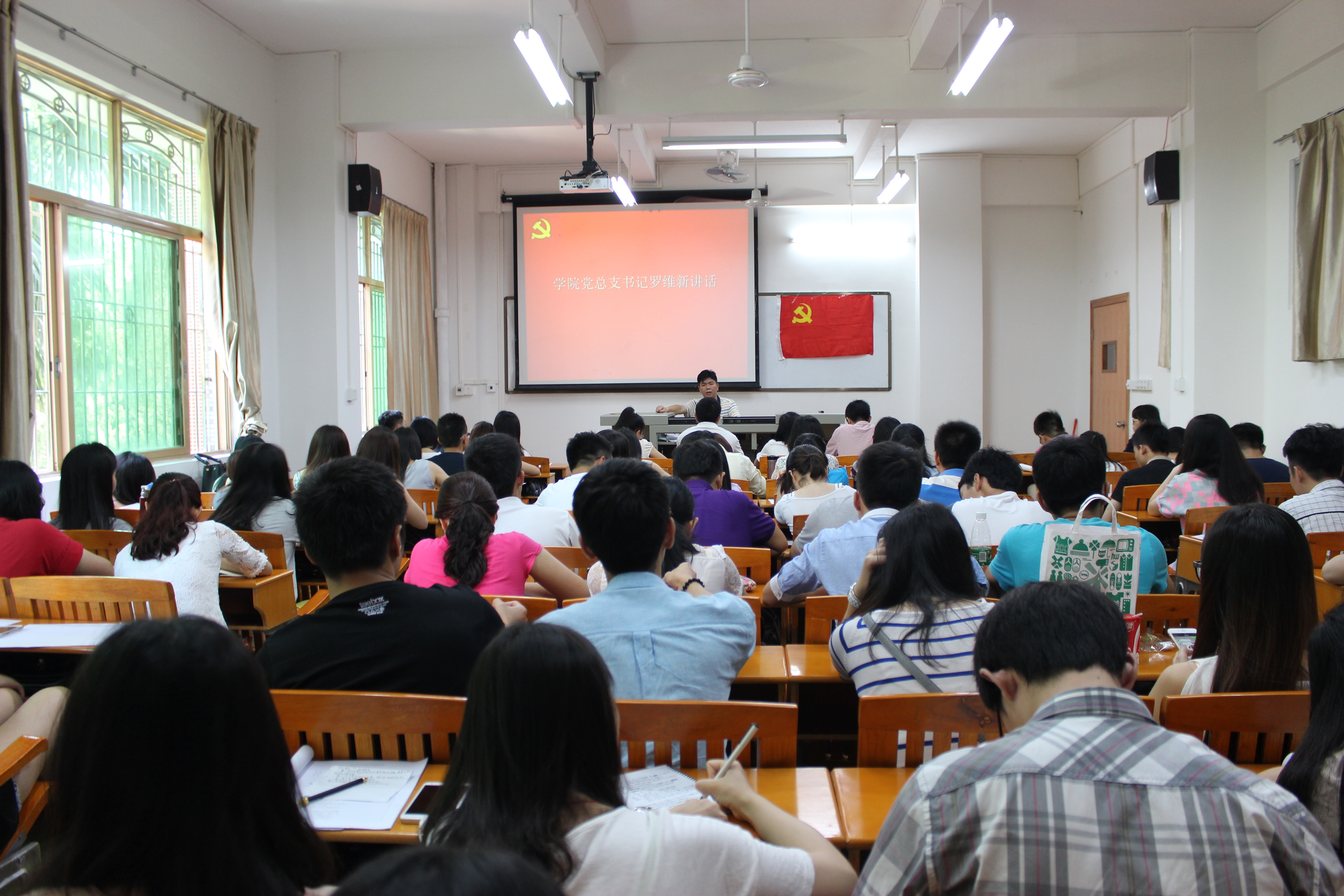 5月15日上午,77365hh在宪梓楼207室举行2015届毕业生党员教育暨宣誓仪式大会。该院党总支书记罗维新、辅导员、各学生党支部书记以及2015届全体毕业生党员参加了会议。 会议在庄严的国歌声中拉开帷幕。罗维新书记首先借用北京大学校长王恩哥的十个“两”讲话内容,对全体毕业生党员提出几点希望:一是“乐吃两样东西”,希望党员同志们做人要不怕吃亏,做事不怕吃苦;二是为自己插上理想和毅力的翅膀;三是培养“两种功夫”,长本事,守本分,希望毕业生党员树立正确的就业观,先就业,再择业,积极积累工作经验,不断进取。最后,罗维新书记要求毕业生党员要做到安全、文明离校,并在同学中起到积极的模范、带动作用。 辅导员老师关于毕业生党员组织关系转出等相关工作作了具体的安排,并带领全体党员面向党旗宣誓,向党表达决心。学生党员代表也上台发言,并深深地表达了对党和学校的感恩情。 又讯 为了进一步深化毕业生做好安全防范意识,做到安全、文明离校。5月15日下午,该院在宪梓楼207教室召开毕业生安全教育大会。该院党总支书记罗维新,辅导员、毕业班班主任及11级各班班长、团支书、宿舍房长等逾80人参加了会议。罗维新书记针对毕业季学生易发的人身、财产安全问题展开,温馨提醒同学们要增强安全责任意识,做好安全防范工作,强调每一位毕业生做到坚决抵制无证驾车或酒后驾车、酗酒滋事、夜不归宿等不文明、不守纪、不安全离校行为,并要求参会的学生干部及学生代表会后要将会议内容传达给身边的每位同学,在同学中起到带头作用,文明安全离校。